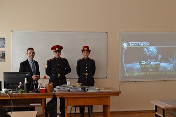 „Тук сме по покана на училището, което е избрало за свой патрон космонавта Владимир Комаров. Двамата курсанти са участници в Клуб за космически изследвания към катедра „Национална и регионална сигурност“ във Военния университет и бяха подготвили интересни факти за първите мисии на България в Космоса.