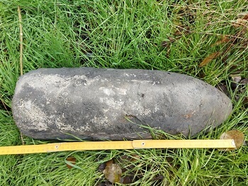 Снарядът е с диаметър 152 мм и дължина 450 мм и е от Първата световна война.