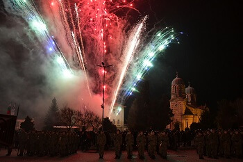 В тържествената заря участваха почетната рота и Духовият оркестър на Военния университет.
